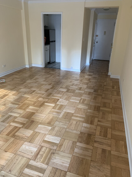 Large sun filled studio in mint condition, three large closets, separate kitchen with new appliances and modern bathroom. Full service building with live-in super, doorman and laundry. 400 square feet. Laundry in building.
